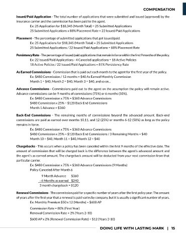 As Earned Commissions - Commission that is paid out each month to the agent for the first year of the policy.