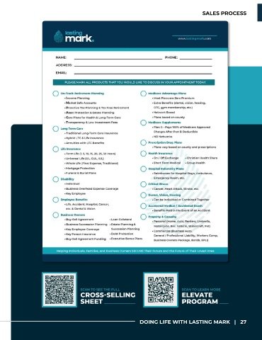 SALES PROCESS SCAN TO SEE THE FULL SCAN TO LEARN MORE CROSS-SELLING ELEVATE SHEET PROGRAM DOING LIFE WITH LASTING MARK | 27